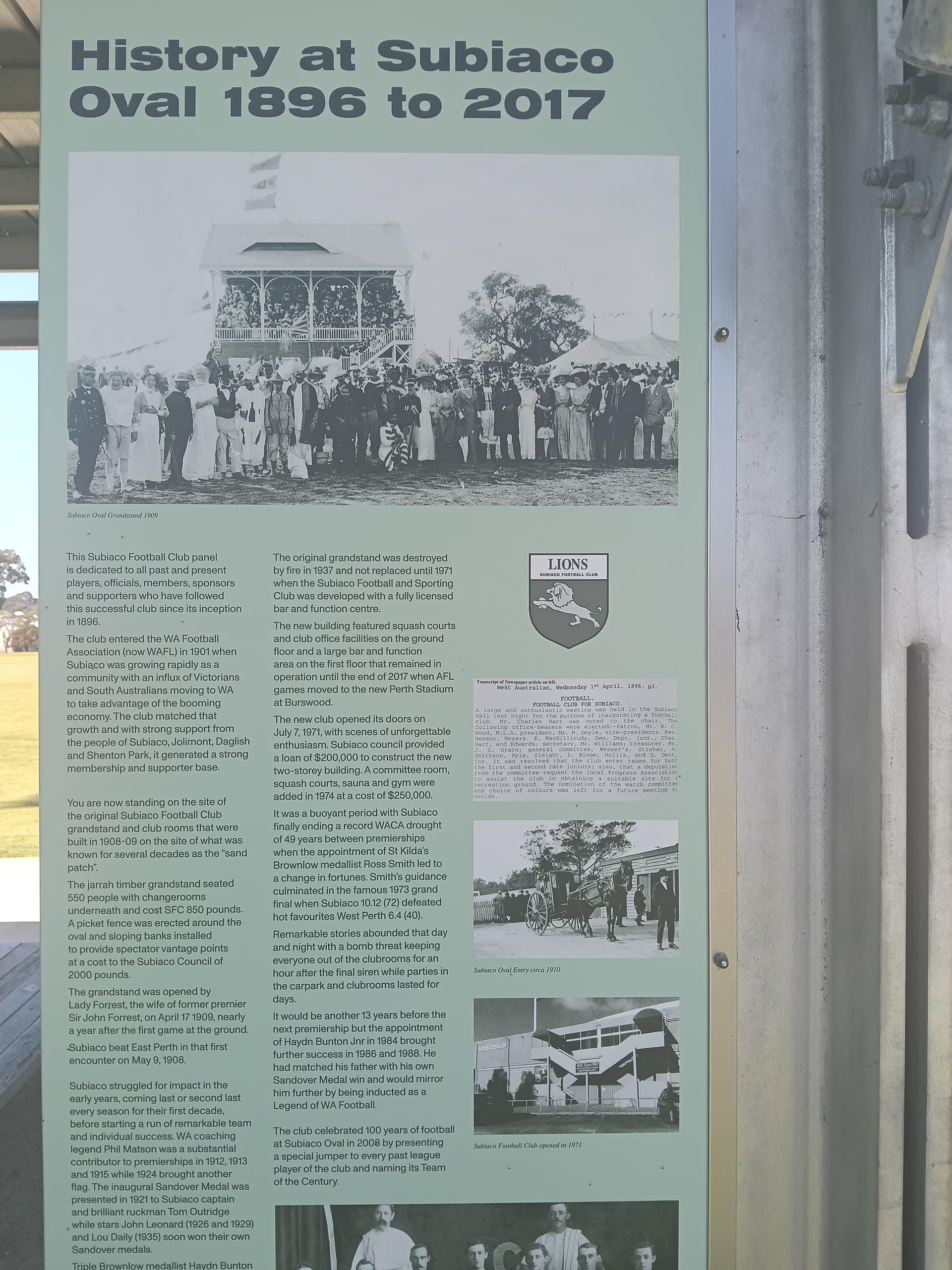 The outdoor museum at Subiaco Oval has been updated with some good Subi history. The museum had been light on for Subi history and this goes a fair way to filling in that gap. Well done to the Subi council.